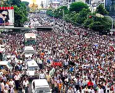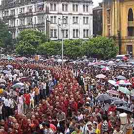 zu wochenlangen Protesten, denen sich auch die buddhistische Geistlichkeit