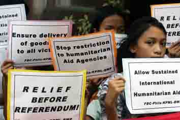 die Opfer des verheerenden Wirbelsturms "Nargis" hereinzulassen.
