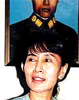 Die immer noch unter "Hausarrest" in Yangon lebende "Opposotionsführerin",