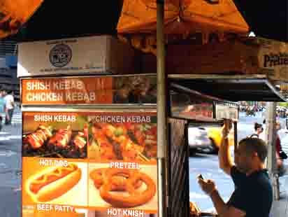Ein Mittagessen ist daher für die in Manhattan arbeitende Bevölkerung täglich nicht mehr leistbar, daher Versorgung durch den : ...................Kebab-Pretzel - Stand --> |