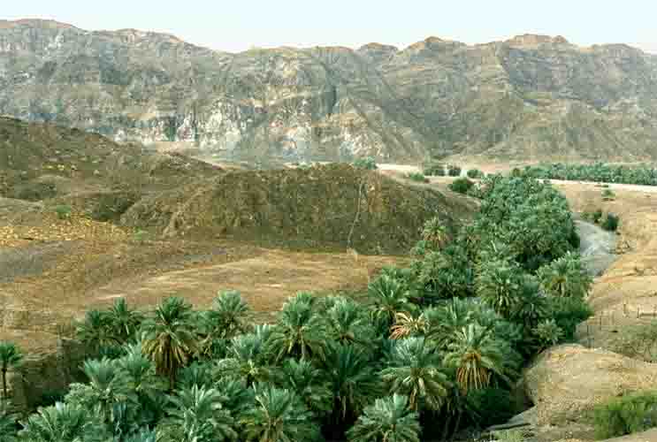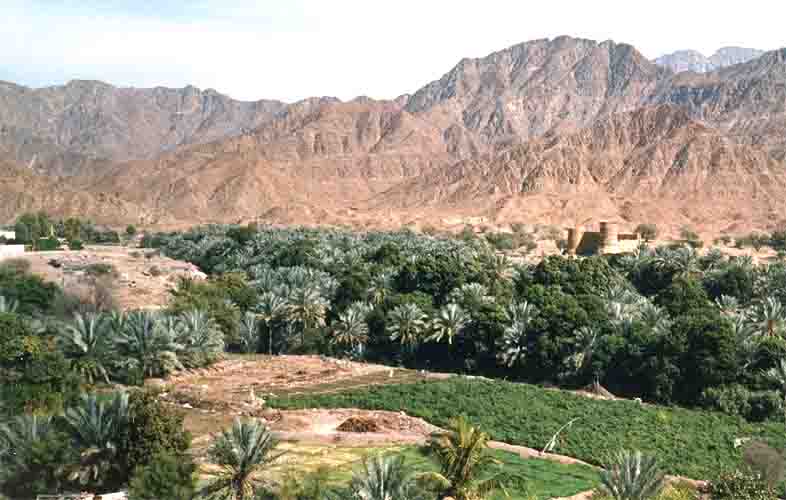 Das Hadschargebirge ist sehr karg, wenige Oasen