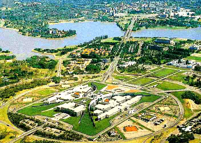 ist eine Planhauptstadt und wurde 1908 aufgrund der Rivalität zwischen Melbourne und Sydney als Kompromisslösung zur zukünftigen Hauptstadt bestimmt. Nach einem internationalen Städtebauwettbewerb entschied sich die australische Regierung für den Entwurf des US-amerikanischen Architekten Walter Burley Griffin. Die Bauarbeiten begannen im Jahr 1913, den Status als Hauptstadt erhielt Canberra am 9. Mai 1927. |