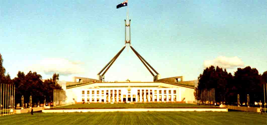 Das Neue Parlament (s.Bild) 1988 von Queen Elisabeth v. England eröffnet Dieses Parlament wurde zur Gänze in einen Hügel hineingebaut |