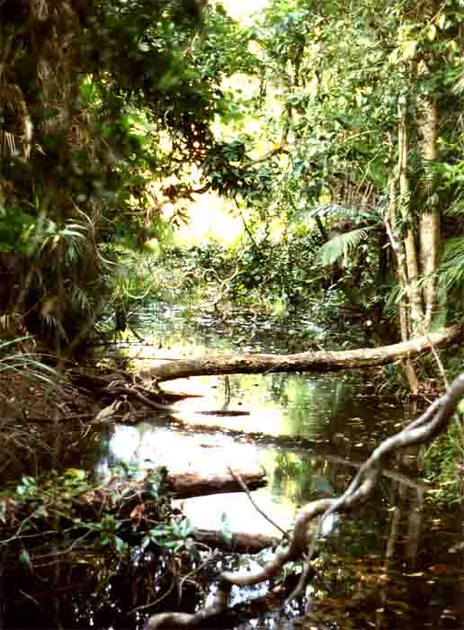 Ein üppiger Regenwald, reich an Reptilien ( "Salties"-Leistenkrokodile,