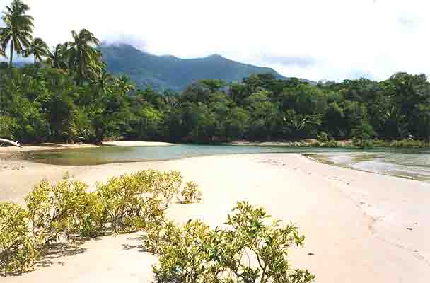 Endlose leere Küsten am Regenwald...