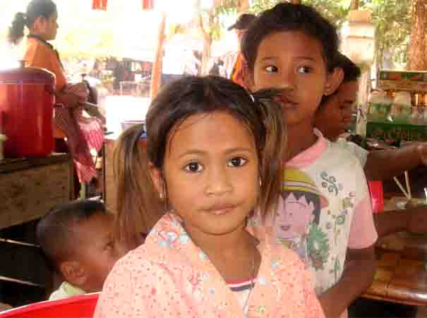 ( Zu wenig Lehrpersonal - nach der intellektuellen"Ausrottung" d.d. "Roten Khmer": so werden die Kinder in zwei Etappen am Tag unterrichtet: 1. Gruppe vormittags, 2. Gruppe nachmittags.) In einem Punkt sind die Kinder vom Staat bevorzugt: bis zum 16. LJ. ist für sie die medizinische Betreuung kostenlos. ( Es gibt allerdings nur 2 Kinderkrankenhäuser: in Siam Reap - v.e. Schweizer betreut - , und in Phnom Penh.) |