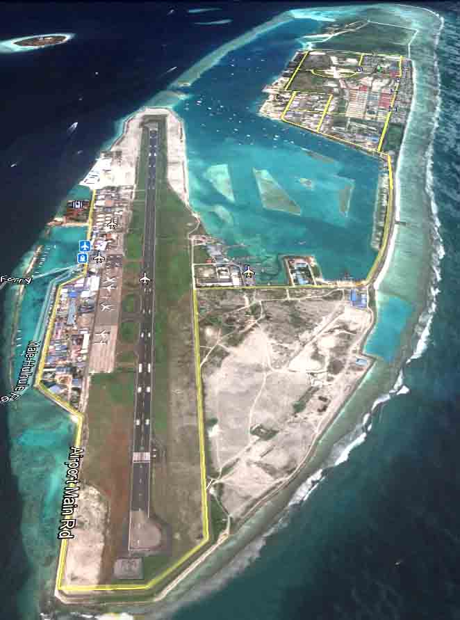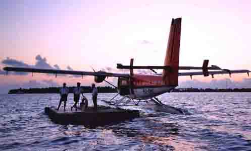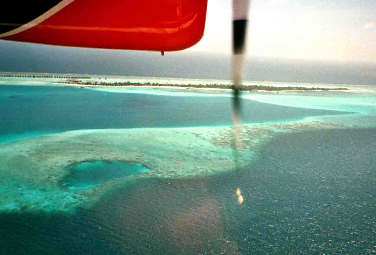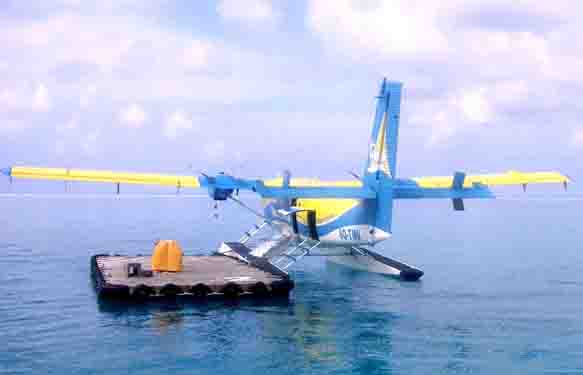 Dieser Inselstaat besteht aus 20 Verwaltungseinheiten, wobei den zugegliederten Atollen ein Bürgermeister zugeordnet wird. Dieses 350000 EW Land wird von einer gewählten Praesidial-regierung geführt.- In den vergangenen 10 Jahren ist der Tourismus nahezu industrialisiert worden: so wurde der Flughafen die Insel Hulule künstlich vergrößert (zum 2.Mal), das einzige Touristentranportmittel - das Dhoni - wurde von der "Twin Otter"-Flotte in Rot abgelöst. Bis 2010 eine zweite "Twin Otter"-Flotte in blau; die beiden Wasseflug-Terminals wurden in den vergangenen Jahren komplett umgebaut. 2010 wurde die Flotte wieder neu gestaltet und die TMA - als "Trans Maledivian Air", als einzige Fluglinie neu geführt. Modernisierte DHC-6-400 (wieder rot). Hululé wurde mit einem Damm nach Norden erweitert: eine künstliche Insel "Hululmale" wurde aufgeschüttet, da Male aus allen "Nähten" platzt ! Rechtes Bild ! |
