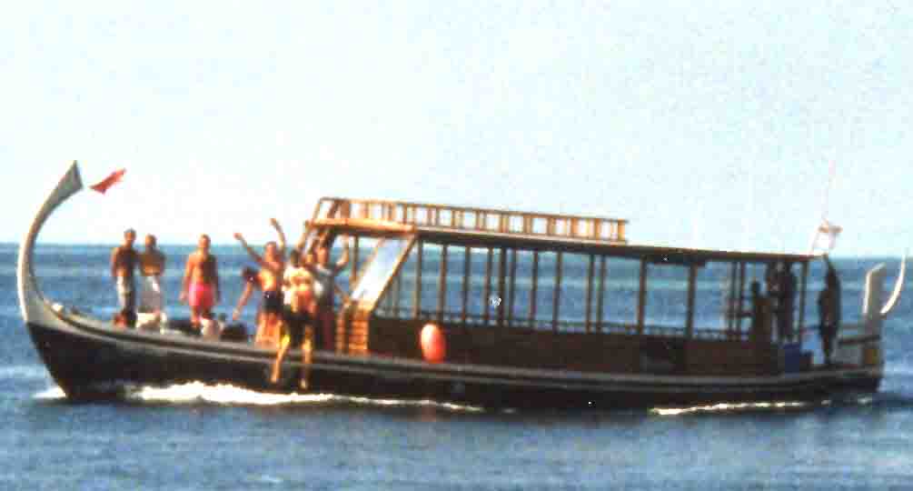 ist: dort bringt einen das traditionelle Dhoni zum Empfang : ---->>