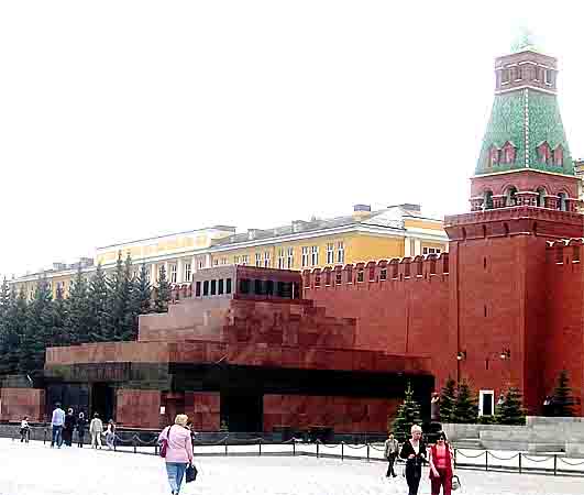 an der Kremlmauer an der das Leninmausoleum liegt. (Sehenswürdigkeit