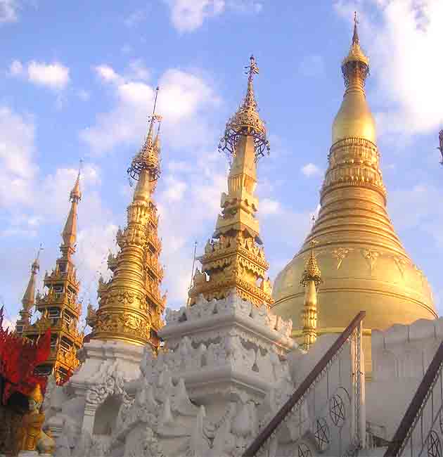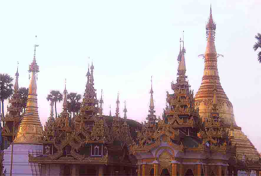 ...langsam wird es Abend am Shwedagon-Pagodenkomplex