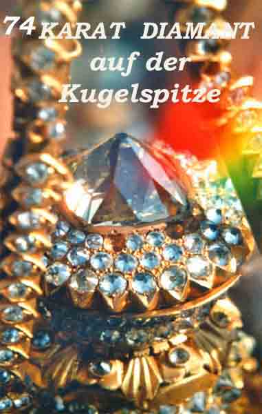 sind am Schirm befestigt. Der Diamant an der Spitze hat 74 Karat!