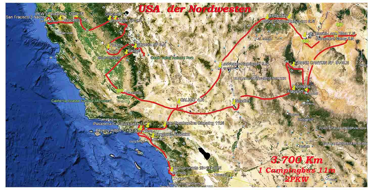 als 4000 km d. 4 Staaten; mit Wohnmobil
