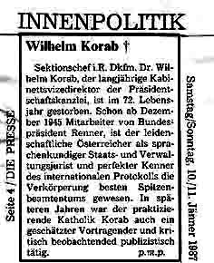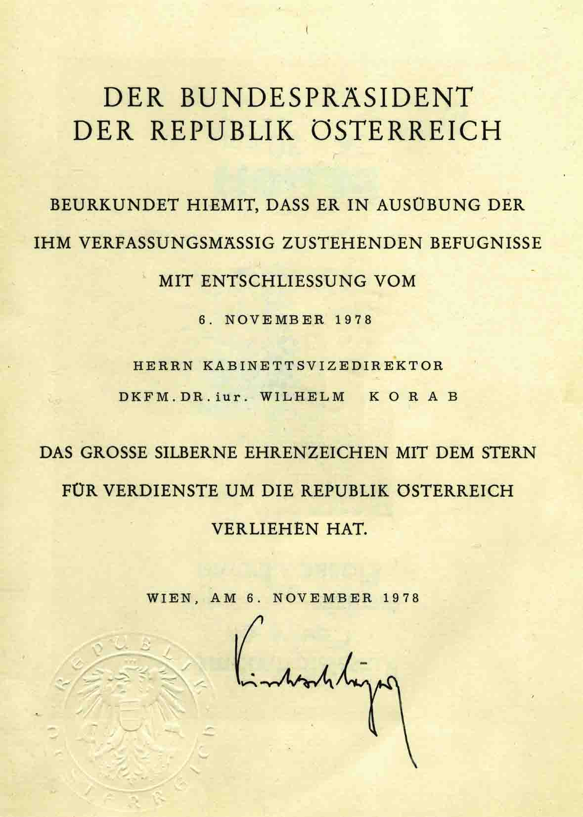 Dr. Wilhelm KORAB wurde für seinen diplomatischen Einsatz